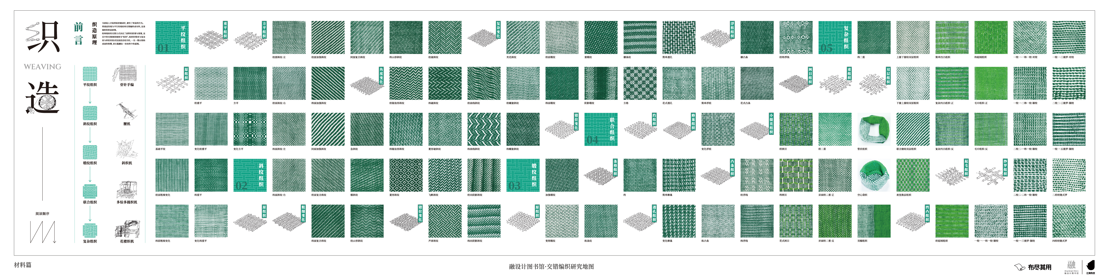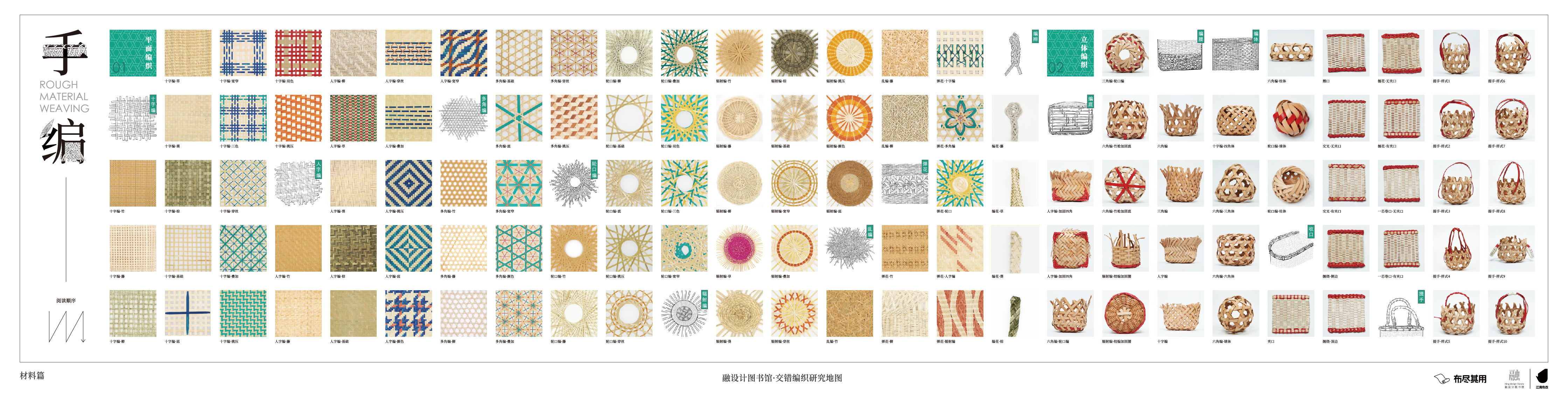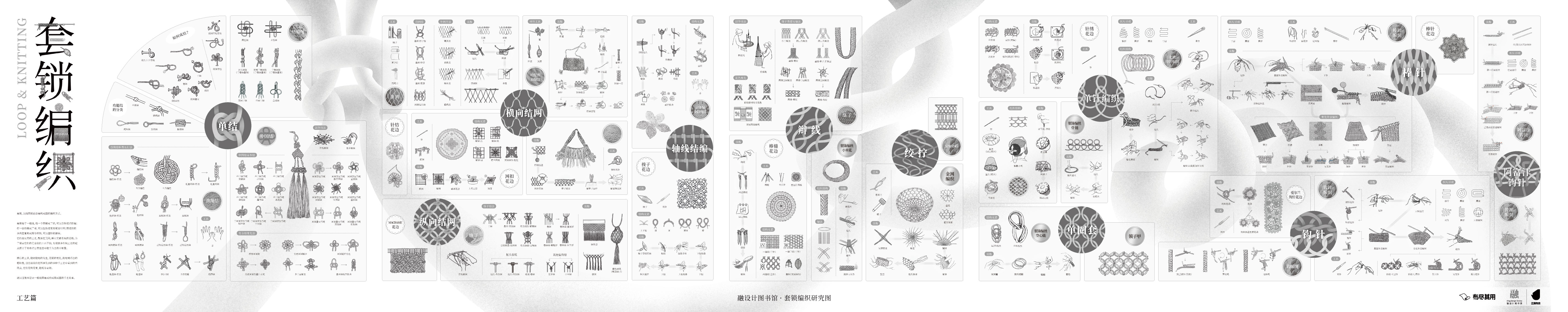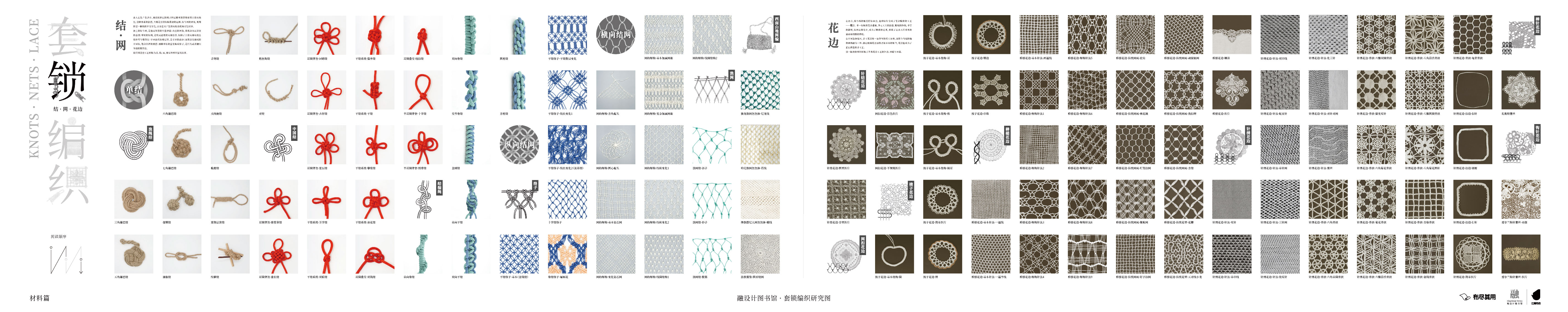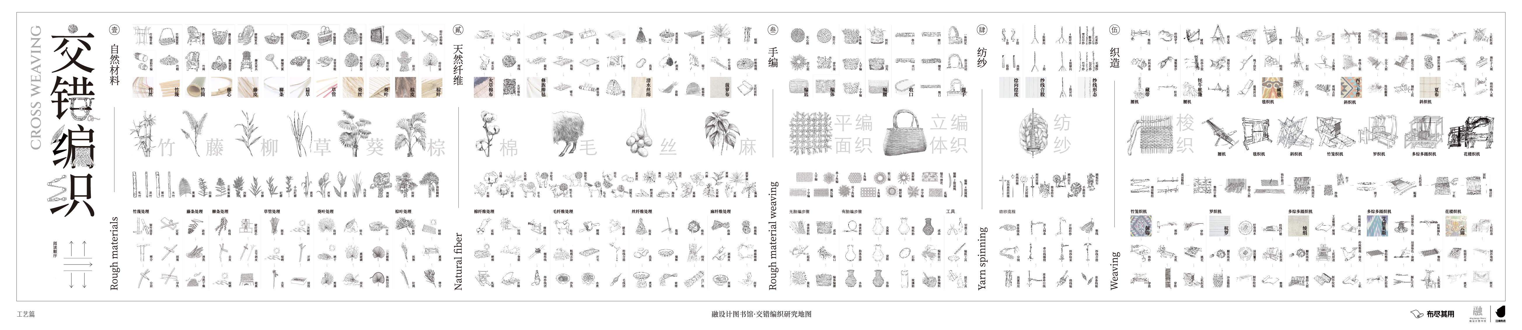 基于交错编织的研究,我们记录手工艺,用解构的方式呈现它们的原理,并将全部的研究过程浓缩在「编织交错·工艺研究图」、「编织交错·手编图」和「编织交错·织造图」三幅研究图中。